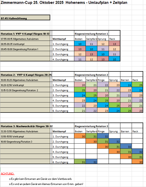 Der aktuelle Zeitplan und die überarbeitete Riegeneinteilung für den Zimmermann-Cup am 25. Oktober 2025 in Hohenems sind jetzt online verfügbar.